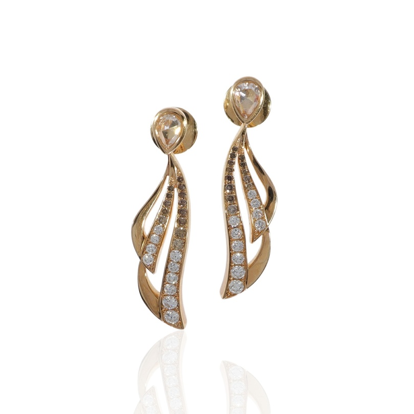 Diese kunstvoll gestalteten Ohrclips vereinen mattierte und polierte Flächen in charakteristischer Fächerform. Ein Rubin als Farbakzent sowie drei Brillanten je Clip verleihen dem Stück dezente Raffinesse – ohne Kompromisse im Design.